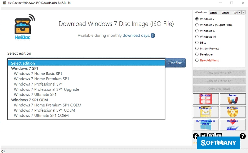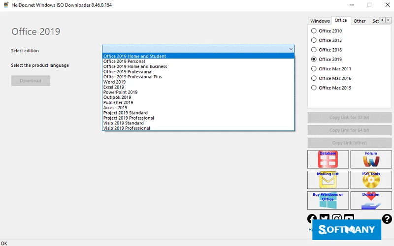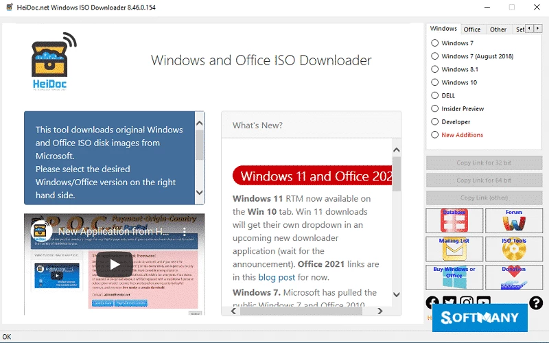 Приложение имеет понятный и простой интерфейс, а также хорошо организованный список версий Windows и Office. Вы также найдете другую важную информацию, такую как даты выпуска, языки и архитектуры. Вы можете использовать функцию поиска и фильтрацию, чтобы быстро найти нужные вам версии. Простота и удобство использования делают это приложение одним из лучших вариантов. Внизу экрана вы найдете ссылку. Просто нажмите кнопку «Скачать» и начните загрузку, или вы можете скопировать ссылку вручную и загрузить файл через браузер.